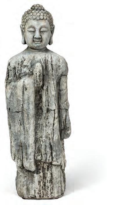 Medium Standing Buddha. Grey. Cement.