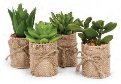 Min 1 4”H 15/C Succulents in Burlap Wrap. Set of 4. Green/Natural. Plastic/Burlap.