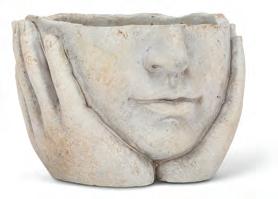 Min 2 6”H Ø:Ø:2”D 24/C Head in Hands Planter. White. Stoneware.