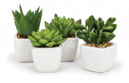 Succulents in Tapered Pot. Set of 4. Green/White. Plastic/Porcelain.