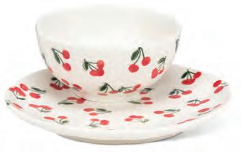 Small Bowl with Cherries. White/Red. Bone China.