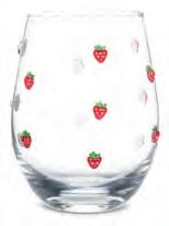 Min 4 4.5"H (18oz) 24/C Stemless Glass with Strawberries. Clear/Red. Glass.