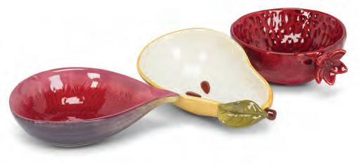 Min 4 3"D 144/C Small Dish with Strawberry. Ivory/Red. Stoneware.