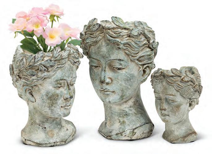 Large Lady Head Planter. Grey. Cement.