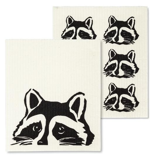 C0600-U0600 ST Peeking Raccoon Dishcloths. Ivory/Black. Cellulose/Cotton.