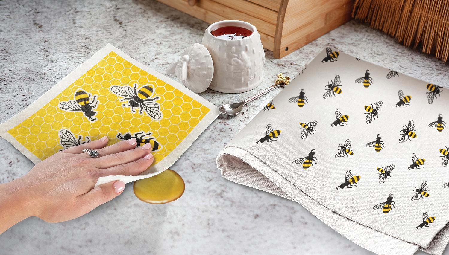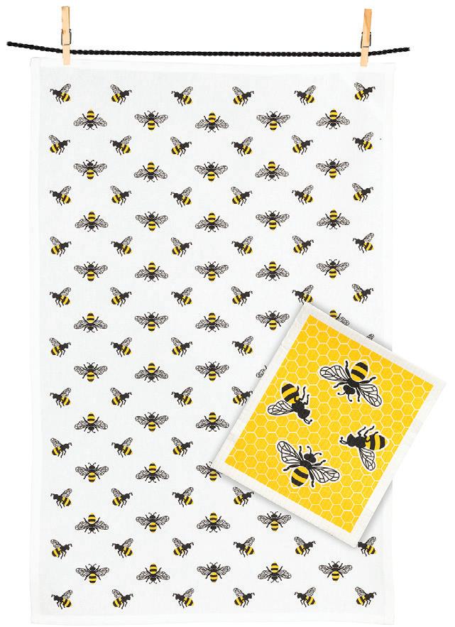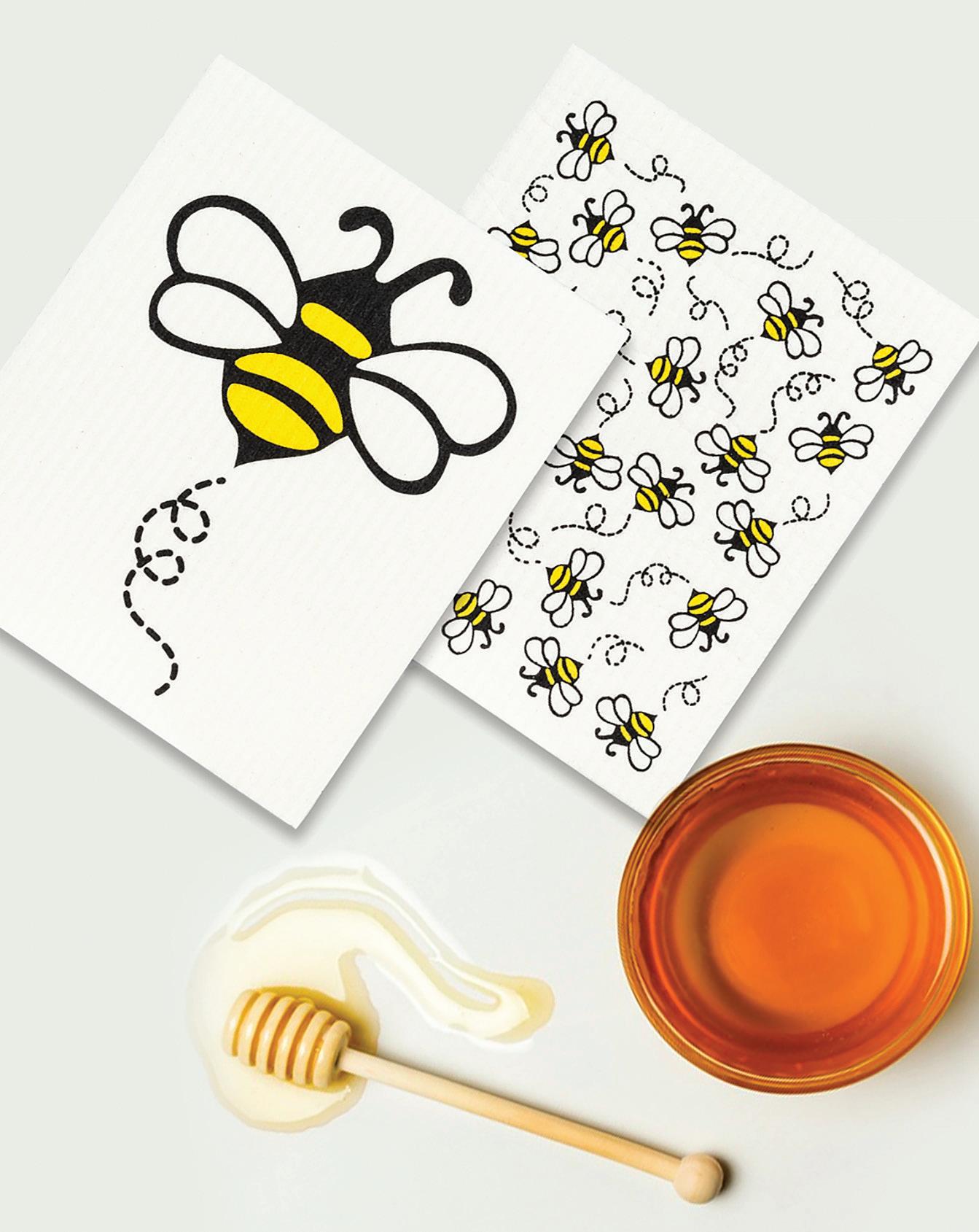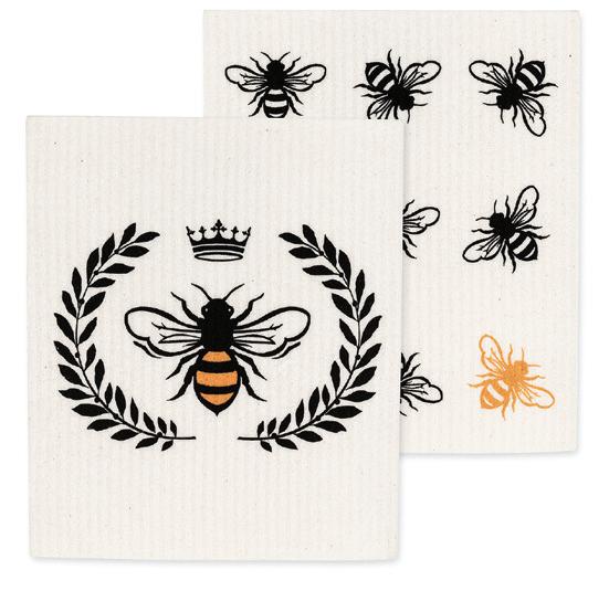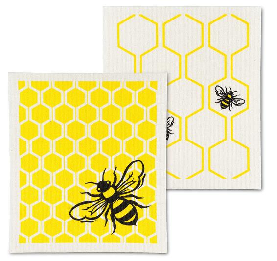 Min 6 6.75x7.5"L 288/C Bee Garden Dishcloth. Ivory/Green. Cellulose/Cotton.