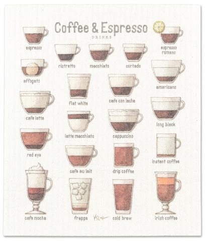 Min 6 6.75x7.5"L 288/C Coffee & Espresso Dishcloth. Ivory/Brown. Cellulose/Cotton.