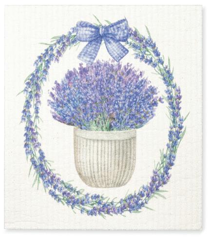 Min 6 6.75x7.5"L 288/C Lavender Wreath Dishcloth. Ivory/Purple. Cellulose/Cotton.