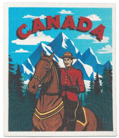Min 6 6.75x7.5"L 288/C Canada Mountie Dishcloth. Multi. Cellulose/Cotton.