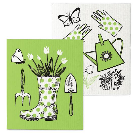Min 6 6.75x7.5"L 288/C Gardening Tools Dishcloth. Ivory/Multi. Cellulose/Cotton.
