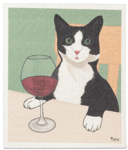 Min 6 6.75x7.5"L 288/C Cat with Wine Dishcloth. Black/Green. Cellulose/Cotton.