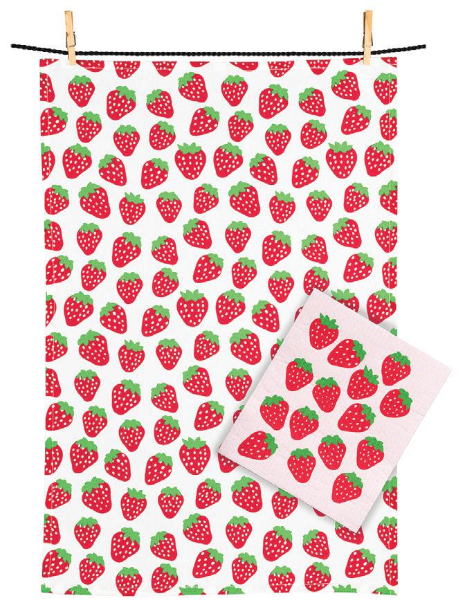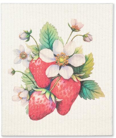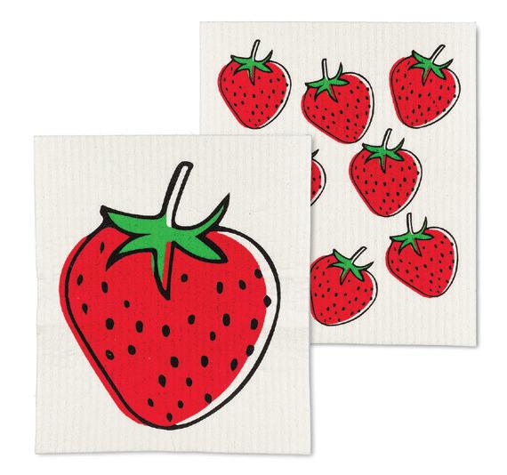 C0600-U0600 ST Strawberry Dishcloths. Ivory/Red. Cellulose/Cotton.