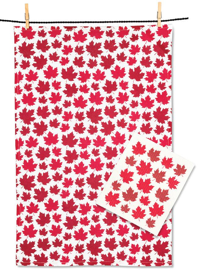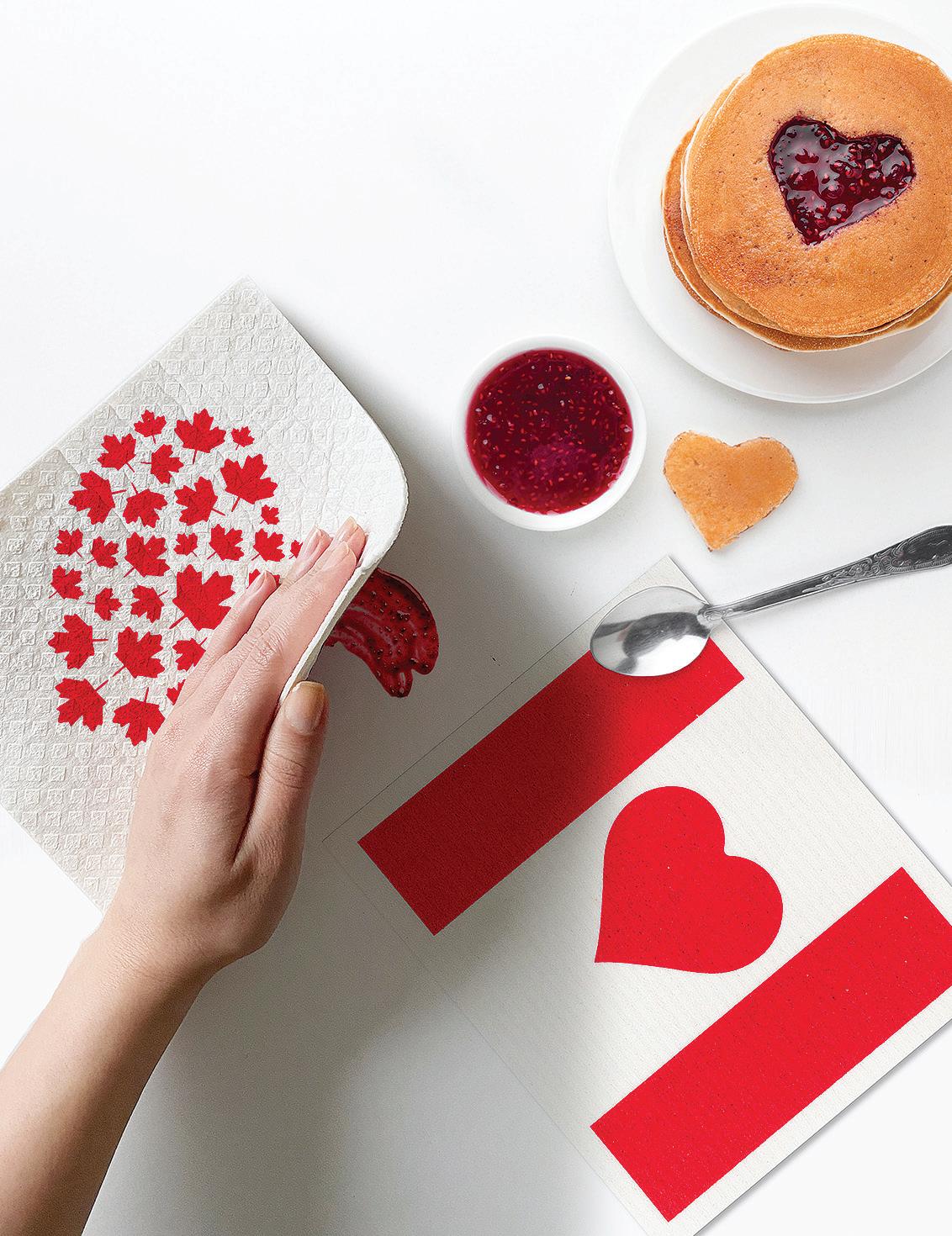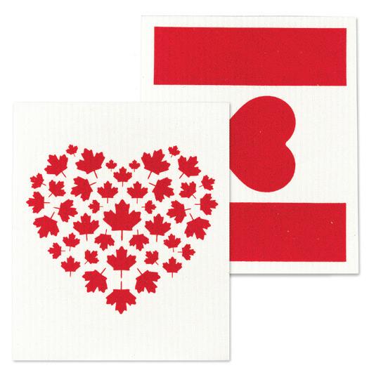 C0600-U0600 ST Canada Flag & Heart Dishcloths. Ivory/Red. Cellulose/Cotton.