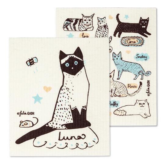 C0600-U0600 ST Cats with Names Dishcloths. Ivory/Brown. Cellolose/Cotton.