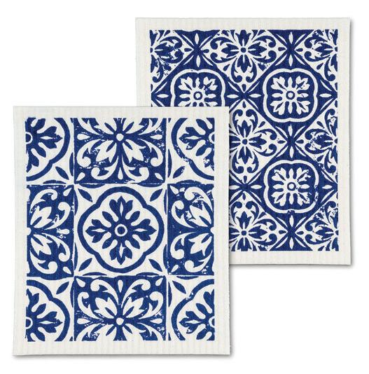 C0600-U0600 ST Blue Tile Dishcloths. Ivory/Blue. Cellulose/Cotton.