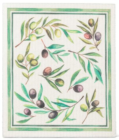 Min 6 6.75x7.5"L 288/C Olives & Leaves Dishcloth. Ivory/Green. Cellulose/Cotton.