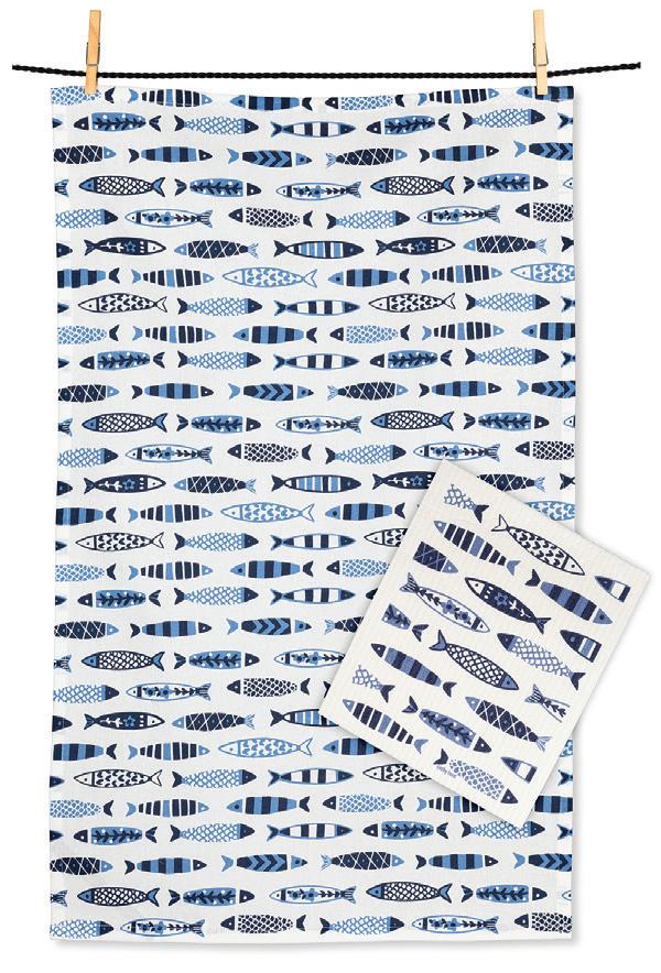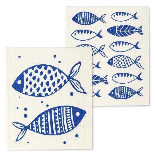 C0600-U0600 ST Fish Dishcloths. Ivory/Blue. Cellulose/Cotton.