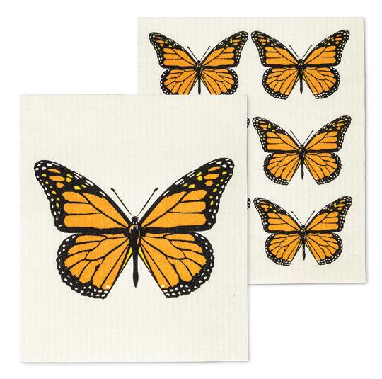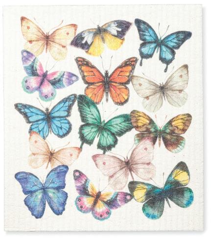 Min 6 6.75x7.5"L 288/C Butterflies Dishcloth. Ivory/Multi. Cellulose/Cotton.