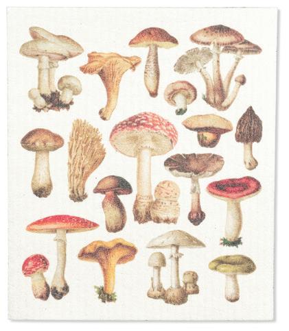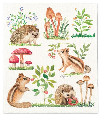 Min 6 6.75x7.5"L 288/C Critters & Mushrooms Dishcloth. Ivory/Brown. Cellulose/Cotton.