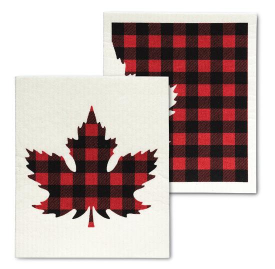 C0600-U0600 ST Buffalo Check Maple Leaf Dishcloths. Ivory/Red. Cellulose/Cotton.