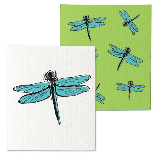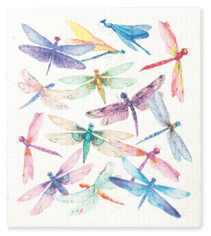 Min 6 6.75x7.5"L 288/C Dragonflies Dishcloth. Ivory/Multi. Cellulose/Cotton.