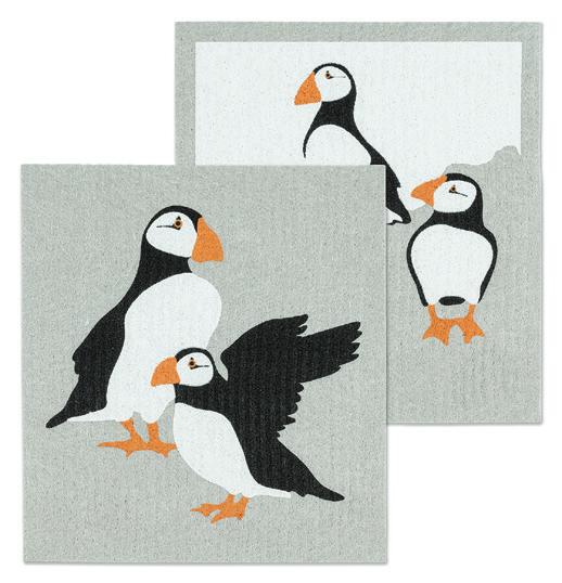 C0600-U0600 ST Puffins Dishcloths. Grey/Black. Cellulose/Cotton.