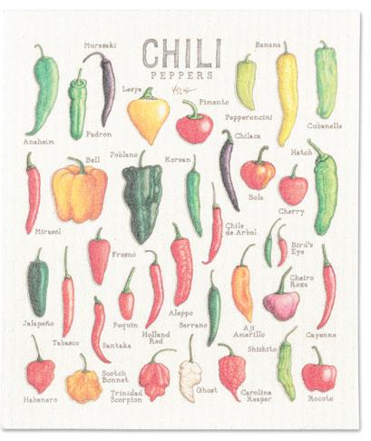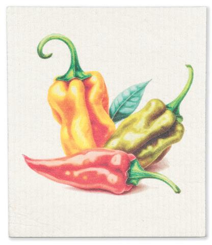 Min 6 6.75x7.5"L 288/C Chili Peppers Dishcloth. Red/Green. Cellulose/Cotton.