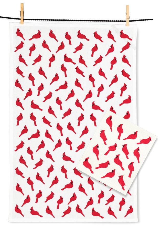 Min 6 6.75x7.5"L 288/C Cardinals Dishcloth. Ivory/Red. Cellulose/Cotton.