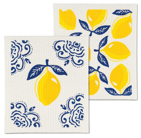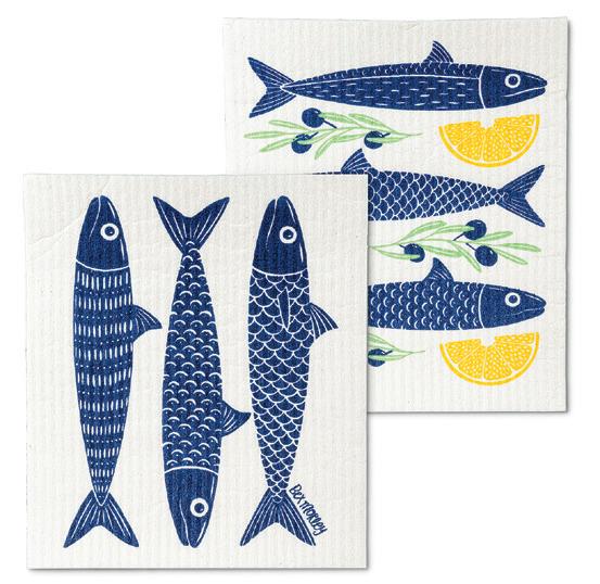 C0600-U0600 ST Fish & Lemons Dishcloths. Ivory/Navy. Cellulose/Cotton.