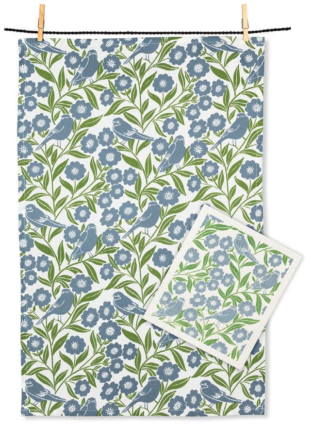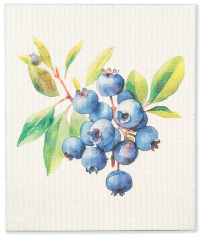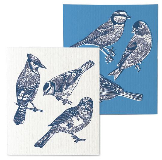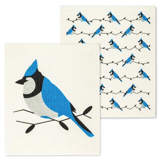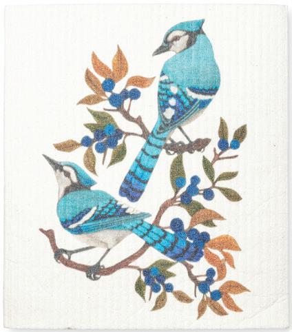 Min 6 6.75x7.5"L 288/C Blue Jays & Berries Dishcloth. White/Blue. Cellulose/Cotton.