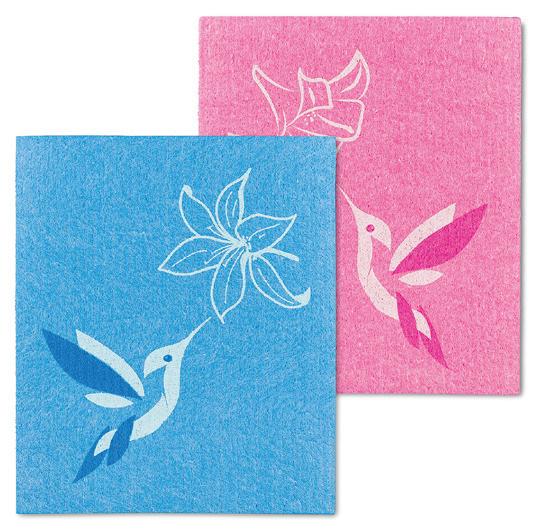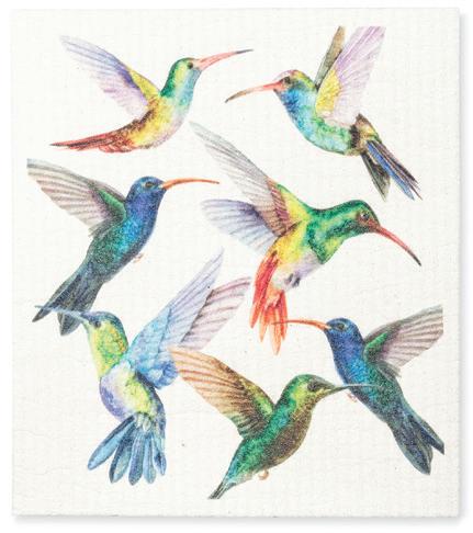 Min 6 6.75x7.5"L 288/C Hummingbirds Dishcloth. Ivory/Multi. Cellulose/Cotton.