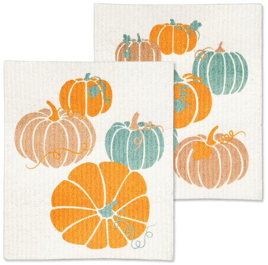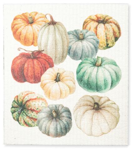 Min 6 6.75x7.5"L 288/C Pumpkins Dishcloth. Ivory/Multi. Cellulose/Cotton.