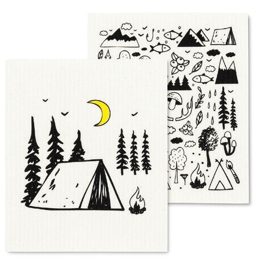 C0600-U0600 ST Camping Motif Dishcloths. Ivory/Black. Cellulose/Cotton.