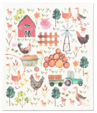 Min 6 6.75x7.5"L 288/C Farmyard Dishcloth. Multi. Cellulose/Cotton.