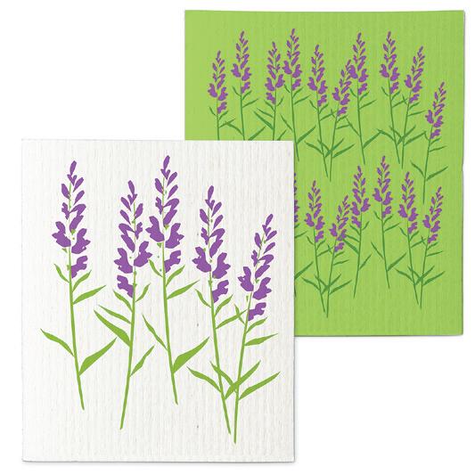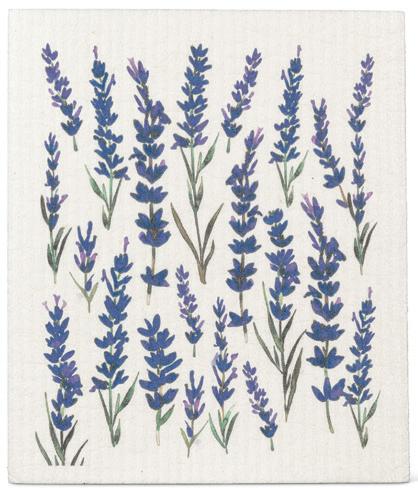 Min 6 6.75x7.5"L 288/C Lavender Field Dishcloth. Ivory/Purple. Cellulose/Cotton.