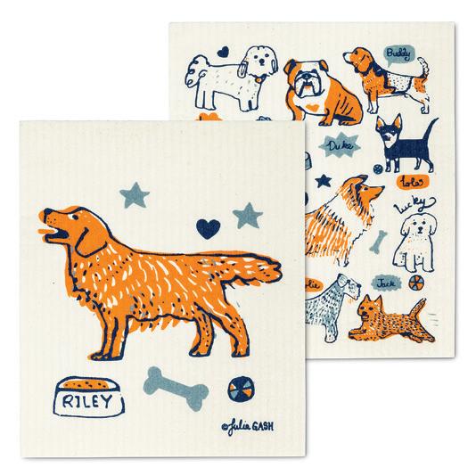 C0600-U0600 ST Dogs with Names Dishcloths. Ivory/Navy Blue. Cellolose/Cotton.