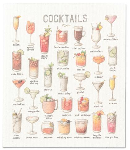 Min 6 6.75x7.5"L 288/C Cocktails Dishcloth. Multi. Cellulose/Cotton.