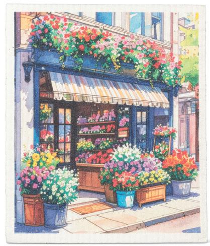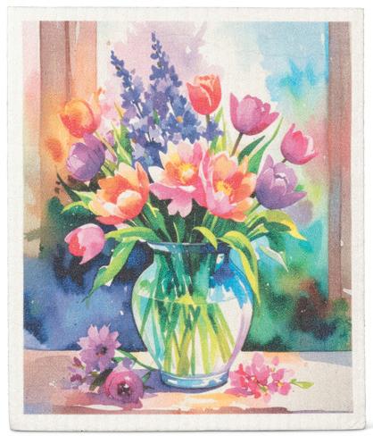Still Life Vase Dishcloth. Multi. Cellulose/Cotton.