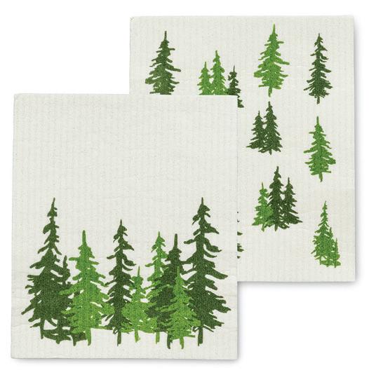 C0600-U0600 ST Evergreen Forest Dishcloths. Ivory/Green. Cellulose/Cotton.