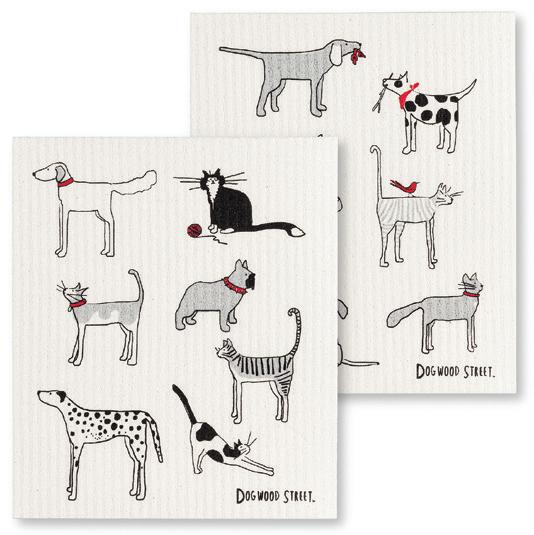 C0600-U0600 ST Dogs & Cats Dishcloths. Ivory. Cellulose/Cotton.