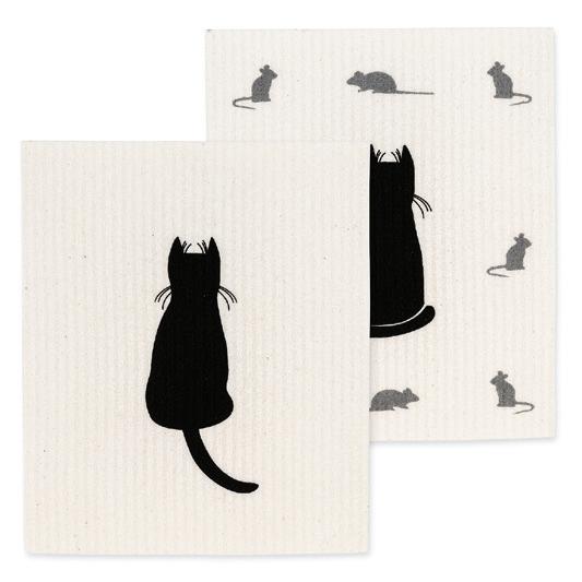 C0600-U0600 ST Cat & Mice Dishcloths. Ivory/Black. Cellolose/Cotton.