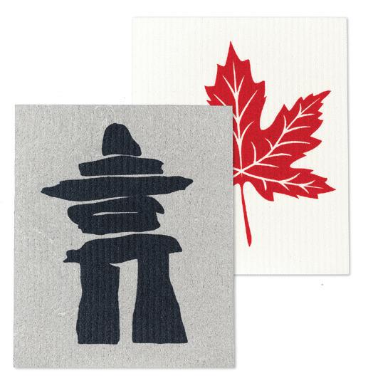 Inukshuk & Maple Leaf Dishcloths. Grey/Red. Cellulose/Cotton.