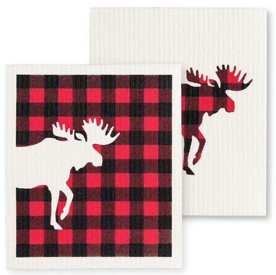 C0600-U0600 ST Buffalo Check Moose Dishcloths. Ivory/Red. Cellulose/Cotton.