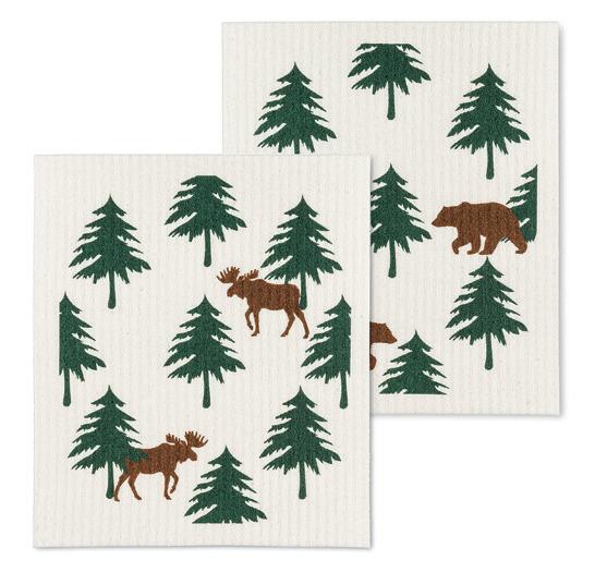 C0600-U0600 ST Moose & Bear Dishcloths. Ivory/Green. Cellulose/Cotton.