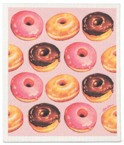 Min 6 6.75x7.5"L 288/C Glazed Donuts Dishcloth. Pink/Brown. Cellulose/Cotton.