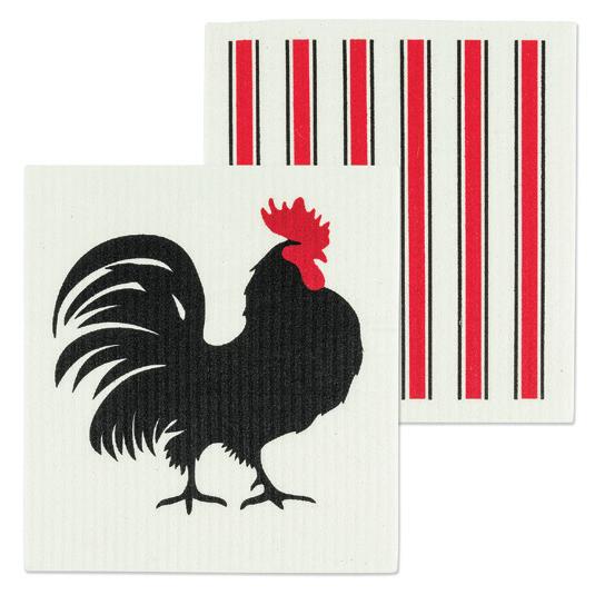 C0600-U0600 ST Rooster & Stripes Dishcloths. Ivory/Black. Cellulose/Cotton.