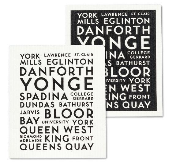 C0600-U0600 ST Toronto Streets Dishcloths. Ivory/Black. Cellulose/Cotton.