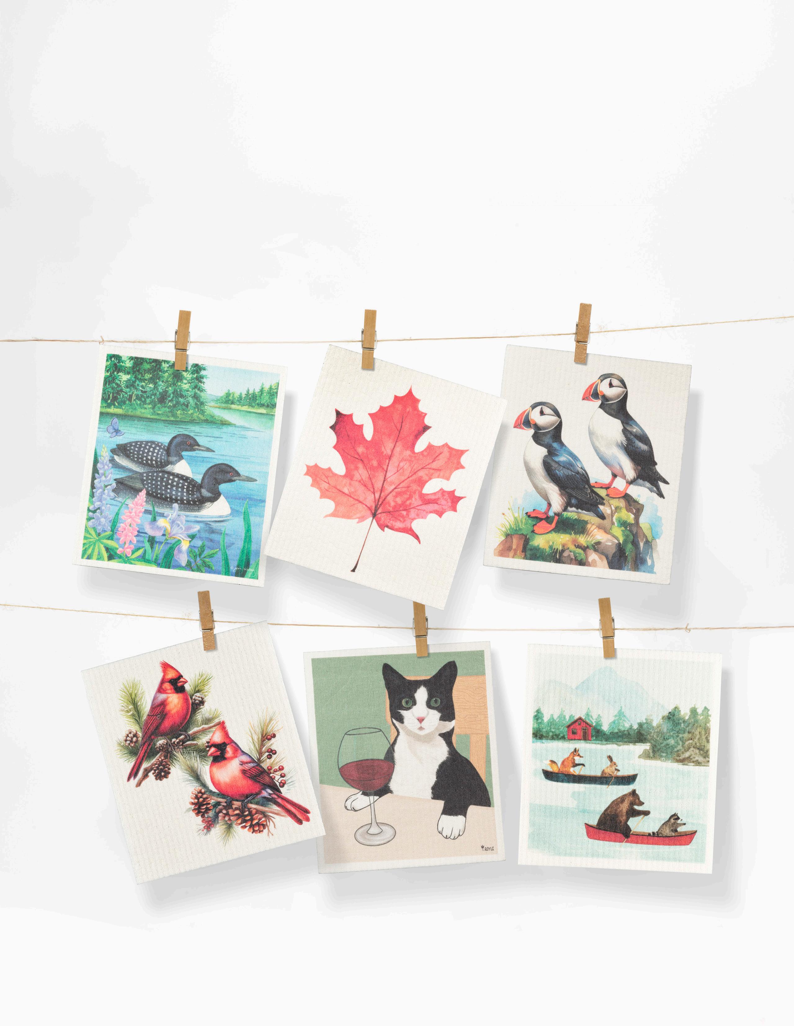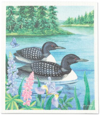 Min 6 6.75x7.5"L 288/C Loon Pair Dishcloth. Multi. Cellulose/Cotton.