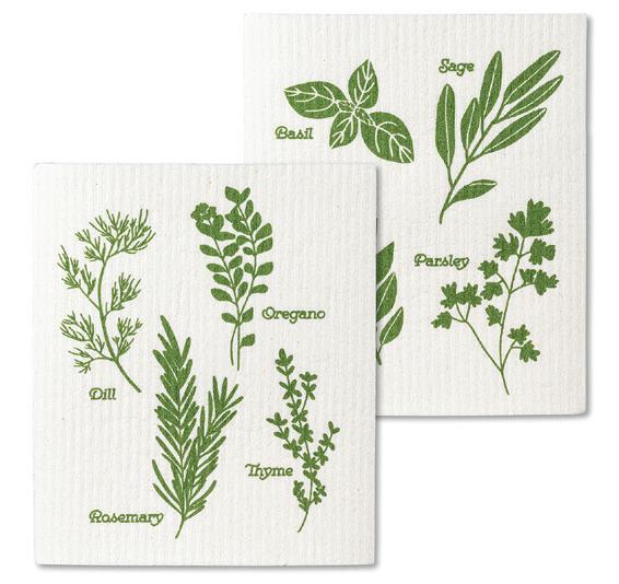 C0600-U0600 ST Assorted Herbs Dishcloths. Ivory/Green. Cellulose/Cotton.