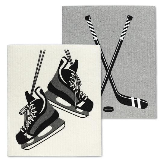 C0600-U0600 ST Hockey Skates & Stick Dishcloths. Grey/Black. Cellulose/Cotton.